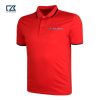 94% Polyester, 6% Spandex, Moisture Wicking, breathable with Self-fabric collar and stand, Set on placket with button closure, contrasting detail on sleeves, Silver CB pennant heat transfer print at back half moon.