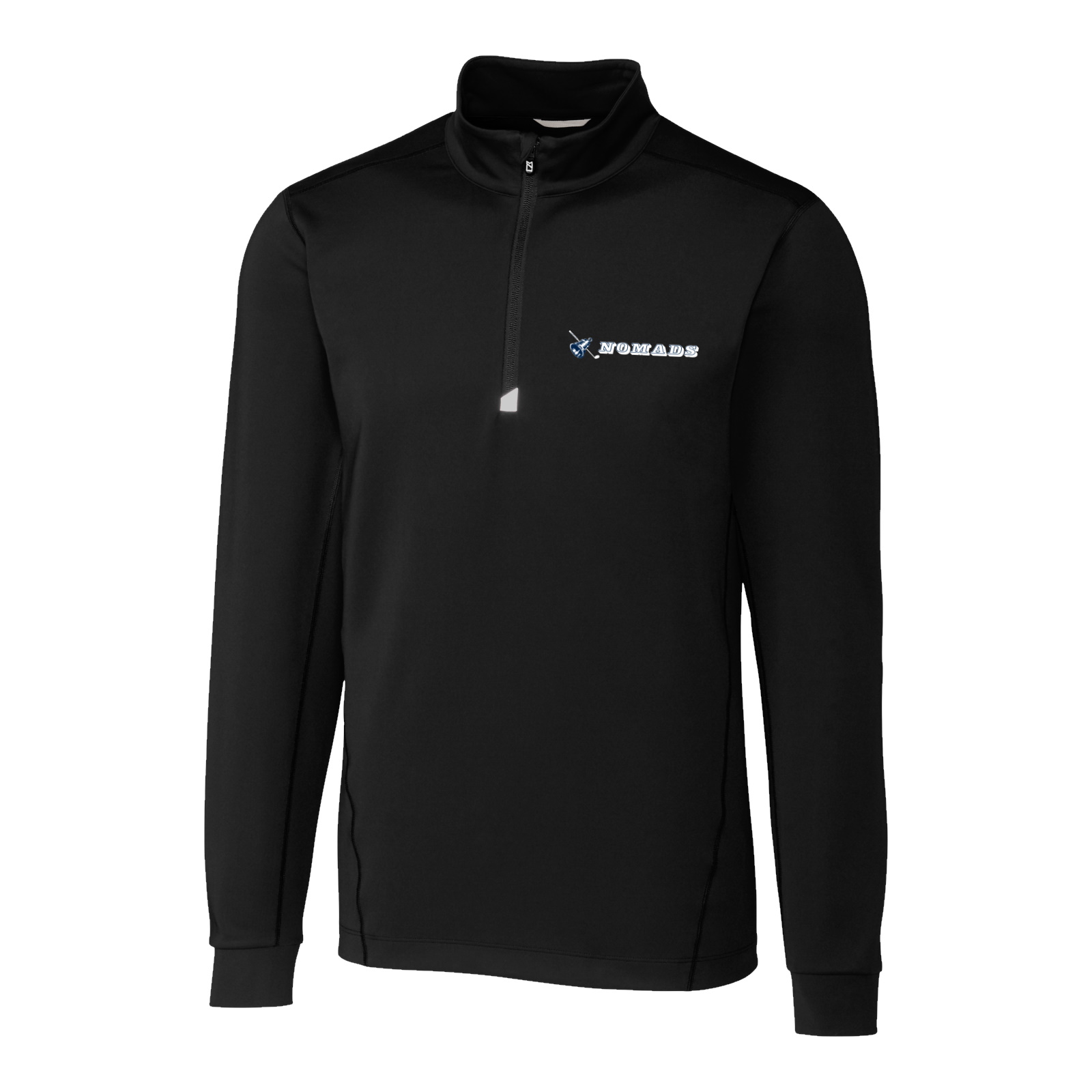 90% Polyester, 10% Spandex, Interlock, CB Drytec UPF 50+, Moisture wicking. The Traverse Half Zip is a solid double knit jersey fabric with matte look, Mock neck half zip, Flat lock construction at seams for clean fit, Straight hem, Reflective tape at zipper, CB logo zipper pull, Silver CB pennant heat transfer print at back half moon, Imported. Also available in a matching ladies piece